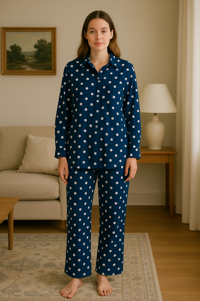 Drift into comfort with our elegantly crafted nightwear set, designed to provide the perfect blend of style and relaxation. Made from soft, breathable cotton or premium modal fabric, this set ensures a lightweight and cozy feel throughout the night. The top features a relaxed fit with delicate stitching, a gentle neckline, and easy-to-wear button or pullover styling. Paired with matching full-length or capri-style bottoms, the ensemble allows free movement and all-night comfort.